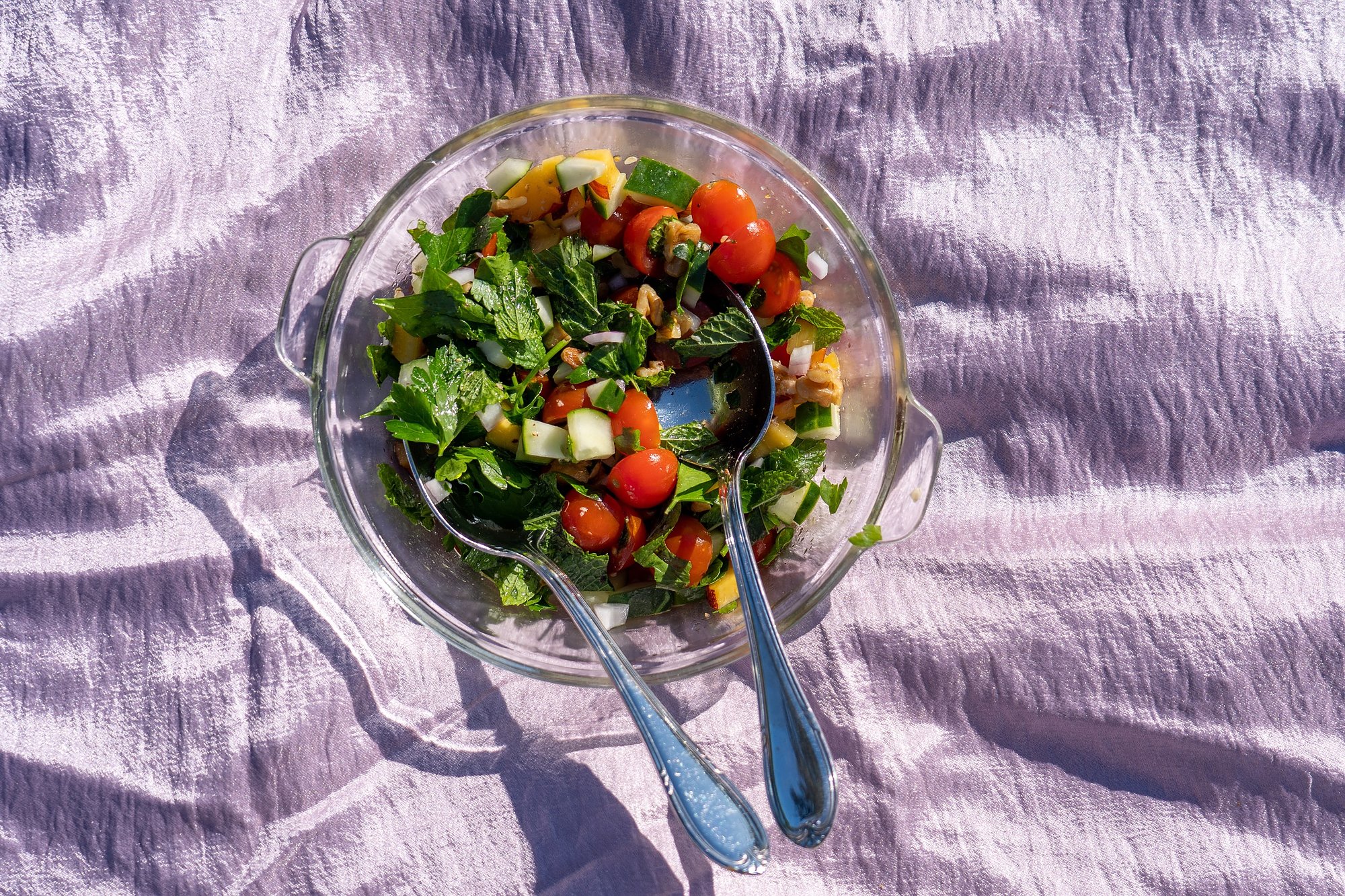 nika is a spin on more traditional Lebanese salads. The coarsely chopped vegetables work together without one flavor overpowering the rest. The mint, parsley, and lemon add freshness to the dish as well as a seasonal aroma.